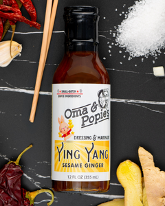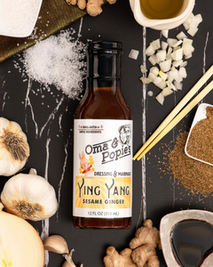 Introducing our newest addition, Ying Yang, a Ginger- Infused Toasted Sesame Soy Dressing. This dressing is more than just a stir fry sauce, it's versatile and can be used in a variety of dishes. It's perfect for making an Asian slaw by tossing with coleslaw, broccoli slaw, or your favorite chopped veggies and topping it off with your choice of protein. You can also blend it with peanut butter, ginger, and garlic to make a delicious Thai Peanut sauce for ribs or chicken. Or, mix it with mayo to make a seafood dip or topper for our Bang Bang dish. The possibilities are endless with this flavorful dressing. We use Lee Kum Kee Premium Soy Sauce, its brewed according to traditional and natural methods that gives it a rich soy flavor and aroma that delicately enhances our sauce. * This product contains Wheat, Soy & Sesame.